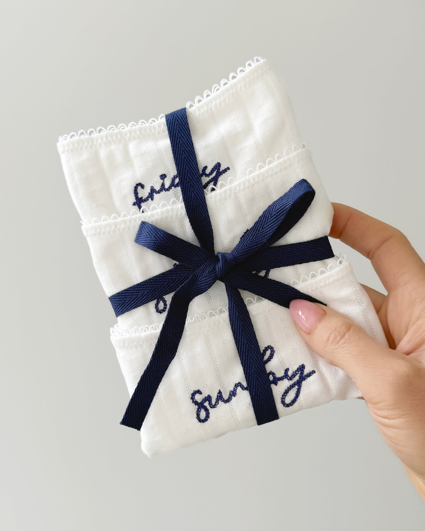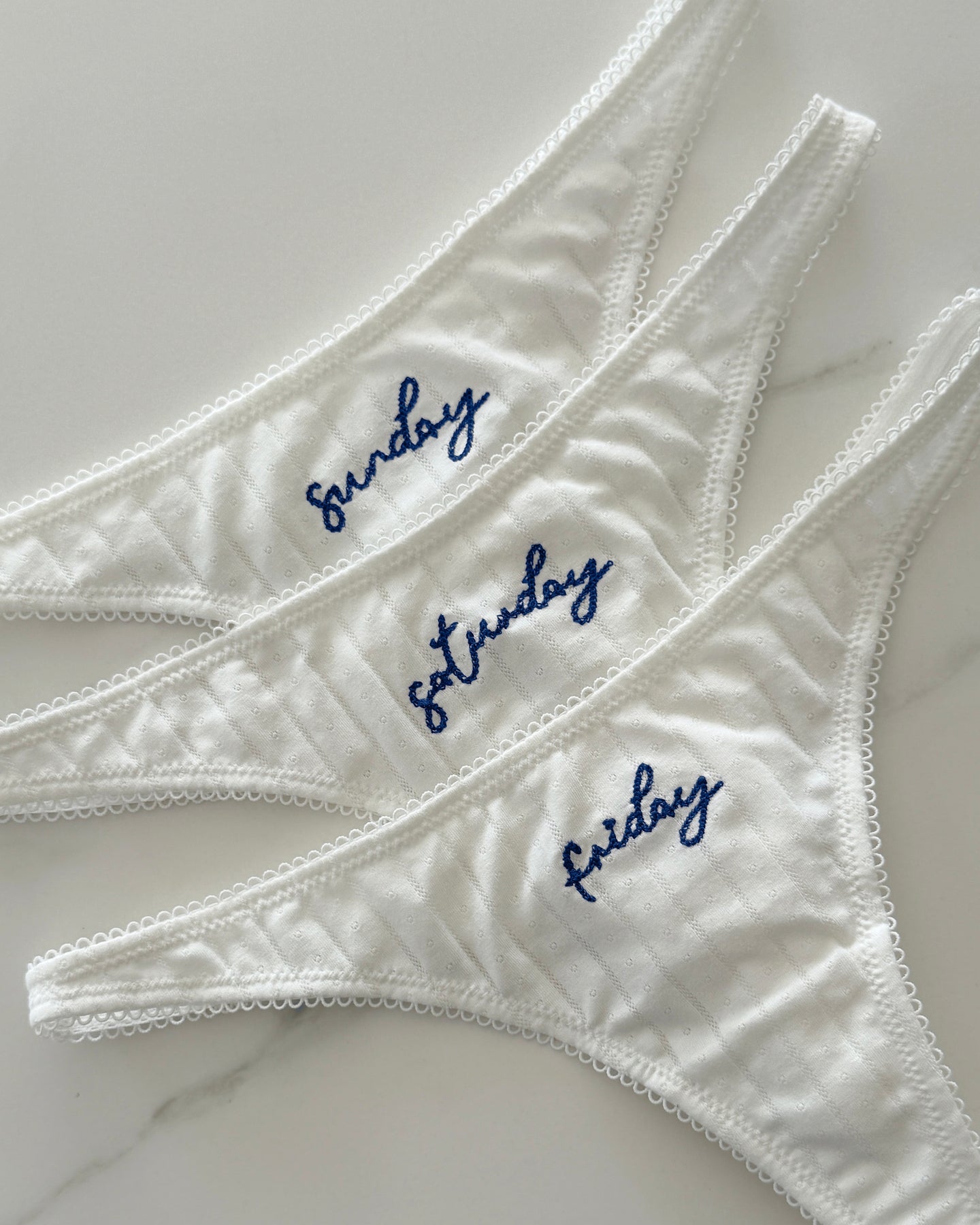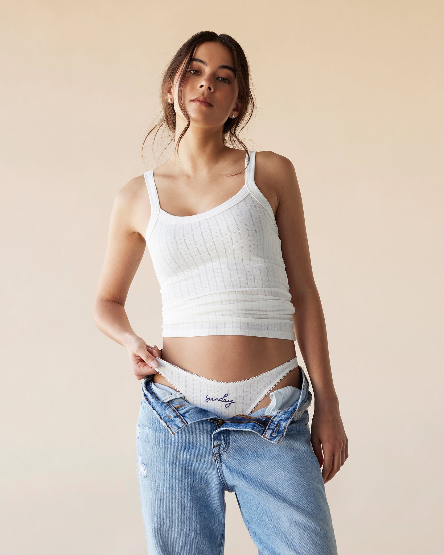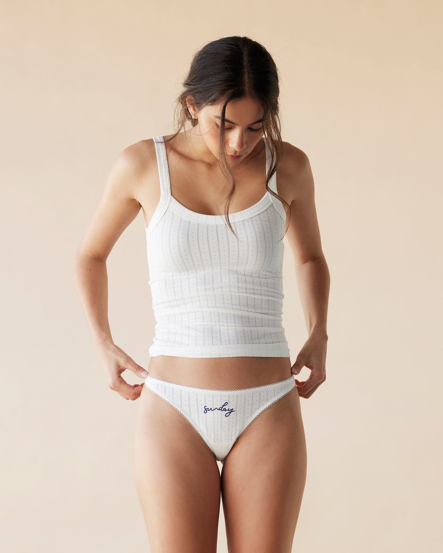 It's a weekend thing, ultimate comfort for your favourite days of the week. Crafted in our exclusive organic cotton pointelle for an ultra-soft second-skin feel. Featuring a flattering high cut, pointelle fabrication, scalloped elastic detailing and signature navy embroidery.