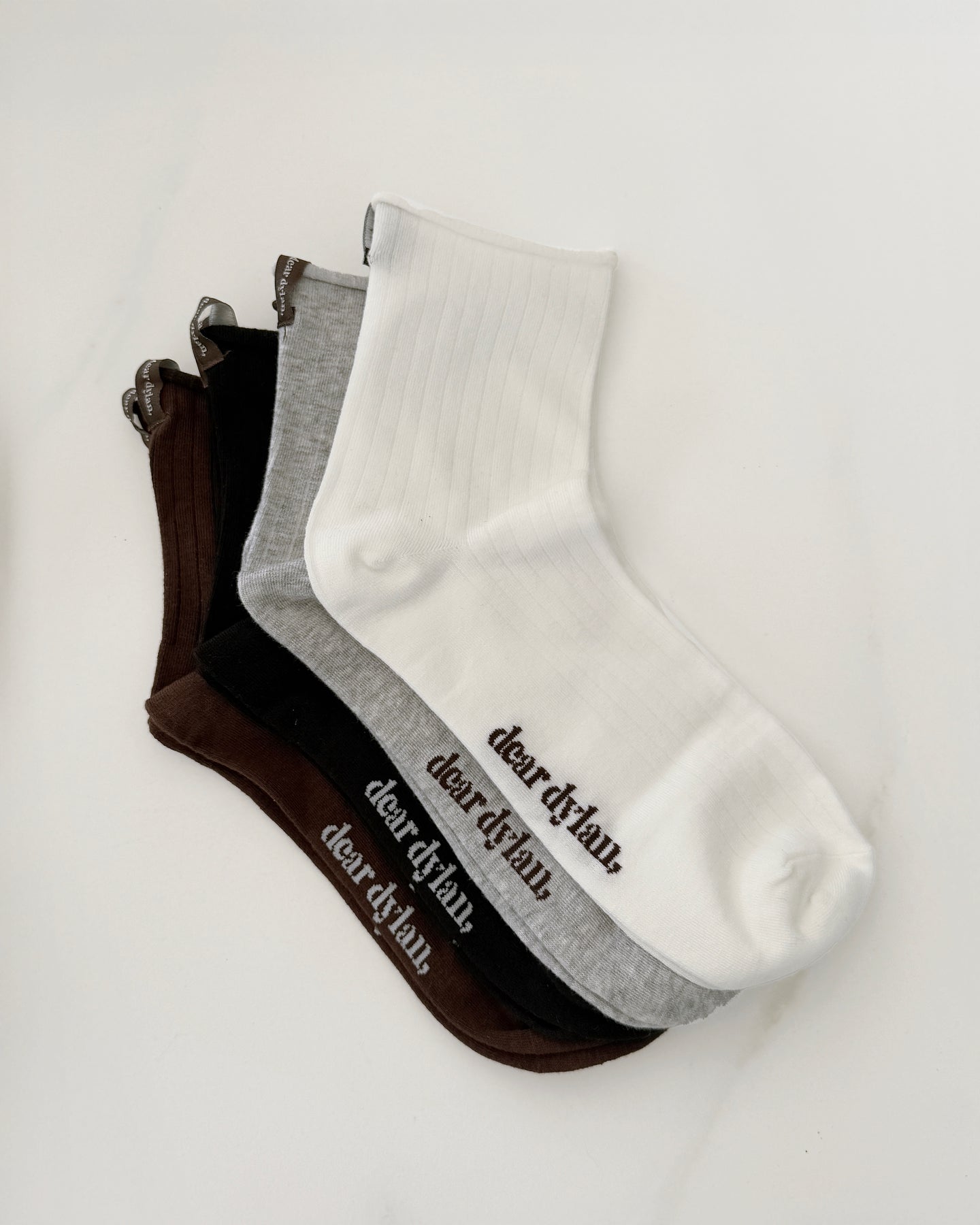A lightweight crew sock, designed for easy wear and comfort. Our roll top Roulé Socks are soft around the ankle and best worn with your favourite sneakers or loafers. Finished with our dear dylan branded loop tag.