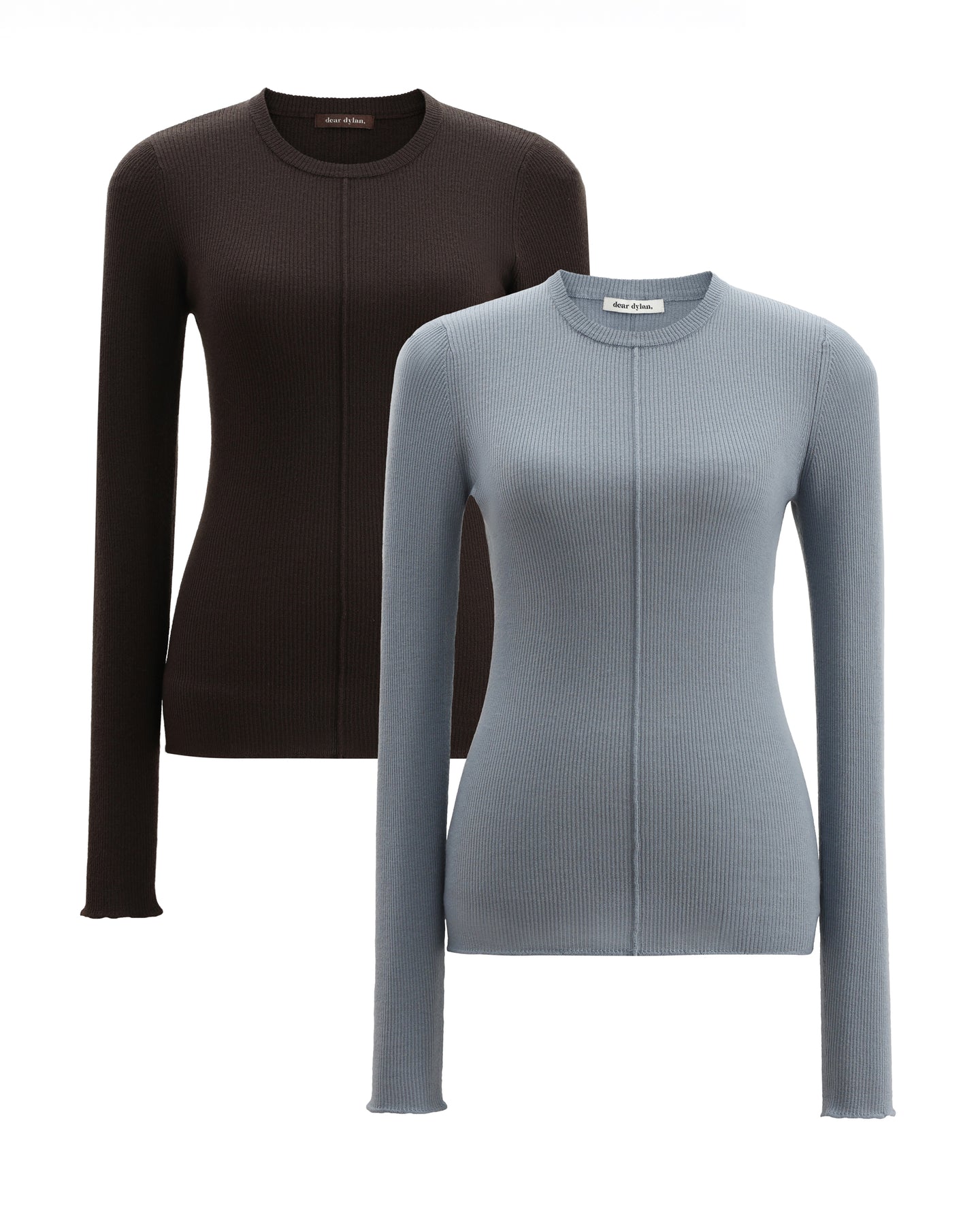 Merino Long Sleeve Knit Duo - Bark + Denim Blue