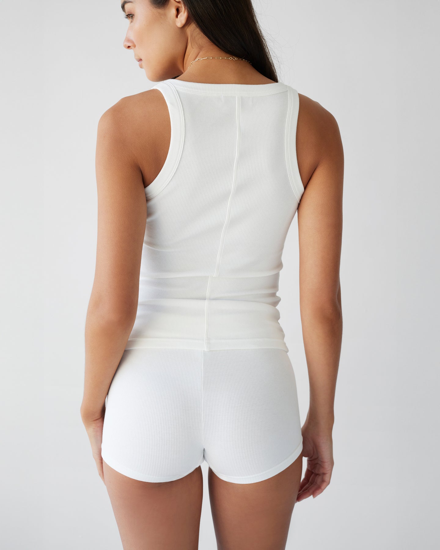 Our signature Daily Tank is a versatile style crafted in premium cotton rib, the perfect multifunctional piece. This style features a scoop neckline, wide bias straps and slim fit through the body. The perfect layering piece and everyday basic.