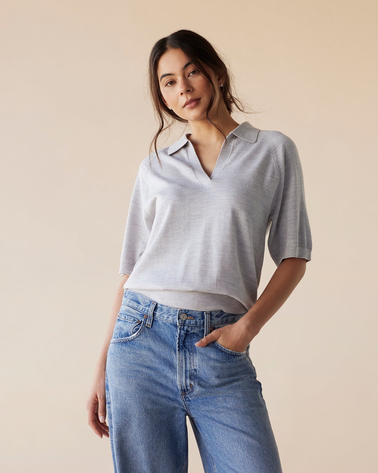 The Palmer Polo offers a classic style, expertly crafted from 100% Merino Wool - a natural fibre renowned for its breathability, softness, and temperature regulating properties. Versatile and understated featuring a V neckline and collar, relaxed silhouette and flattering sleeve, finished with a ribbed hem and subtle detailing. An essential addition to a considered wardrobe.